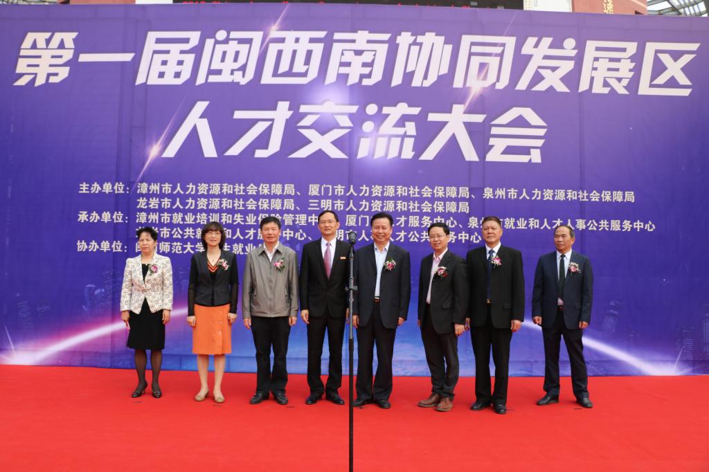 為深化閩西南協同發展區人才合作,搭建人才交流平臺,促進區域人才資源共享和優化配置,12月1日上午,第一屆閩西南協同發展區人才交流大會在我校弦歌廣場舉行。漳州市人民政府副市長謝毅泰,我校長李順興、副校長林致遠等領導出席活動,漳州、廈門、泉州、龍巖、三明等五地市人社局和我校相關部門負責人參加大會。