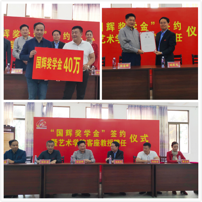 本著為推動(dòng)教育事業(yè)發(fā)展、促進(jìn)校企文化交流,激勵(lì)學(xué)生勤奮學(xué)習(xí)、刻苦鉆研、獻(xiàn)身美育事業(yè),國(guó)輝工貿(mào)集團(tuán)捐贈(zèng)40萬(wàn)元,面向藝術(shù)學(xué)院美術(shù)與設(shè)計(jì)系學(xué)生成立“國(guó)輝獎(jiǎng)學(xué)金”。林致遠(yuǎn)在致辭中表示,希望通過(guò)“國(guó)輝獎(jiǎng)學(xué)金”的設(shè)立,激勵(lì)美術(shù)與設(shè)計(jì)系學(xué)生成長(zhǎng)成才,提高藝術(shù)學(xué)院的學(xué)習(xí)風(fēng)氣,并號(hào)召藝術(shù)學(xué)院學(xué)生學(xué)習(xí)國(guó)輝工貿(mào)感恩精神,努力學(xué)習(xí),創(chuàng)作出更多優(yōu)秀的藝術(shù)作品貢獻(xiàn)社會(huì)。