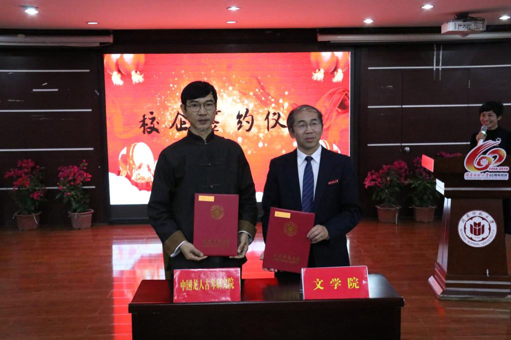 此次簽約儀式,旨在構建校企合作新平臺,在人才培養、師資培育和課題研究等方面進行深入全面的合作。其中,文學院與龍人古琴研究院共同設立的“閩南師范大學-龍人古琴課堂”,旨在為學校古琴藝術愛好者乃至漳州市的古琴愛好者們,提供學習古琴藝術、以琴會友的平臺,并為學校傳統文化研究和人才培養提供更廣闊的空間。文學院與黃志勇語文名師工作室的簽約合作不僅加強了學院與漳州市語文基礎教育的緊密聯系,也發揮了校友在師范專業人才培養方面的積極作用。福建省教育裝備行業學生裝聯合會以及中國孔子學會儒家樂教指導委員會也在文學院落戶掛牌。