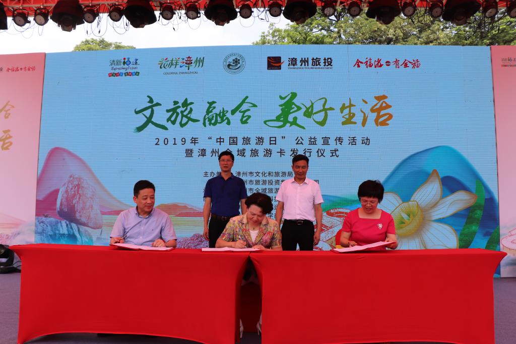 5月19日上午,2019年“中國旅游日”公益宣傳活動暨漳州全域旅游卡發行儀式在漳州古城北廣場舉辦。我校黨委書記吳彬鏹,漳州市副市長蘭萬安,我校黨委常委、副校長蔣一婷出席活動。漳州市文化和旅游局、市文明辦、漳州旅游和投資集團,我校校地辦、商學院等相關單位負責人和企業代表參加活動。