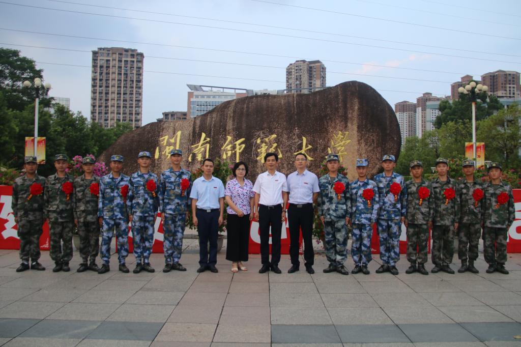 會上,鐘發亮與新兵代表一一親切交談。他表示,應征入伍不僅是個人和家庭的光榮,更是學校的光榮,希望同學們珍惜來之不易的機遇,把軍營當成個人成長的大舞臺,積極發揚人民軍隊優良傳統,在部隊吃苦耐勞、學習本領、鍛煉膽魄,以強軍夢托起中國夢。希望同學們不忘來時路,珍惜在閩南師大收獲的師生情、同窗情,把閩師人的優良品格帶到部隊,將閩南師大奮斗的種子播撒到軍營,積極建功立業。他要求學校有關部門要認真落實征兵工作政策,全力做好各項保障服務工作。