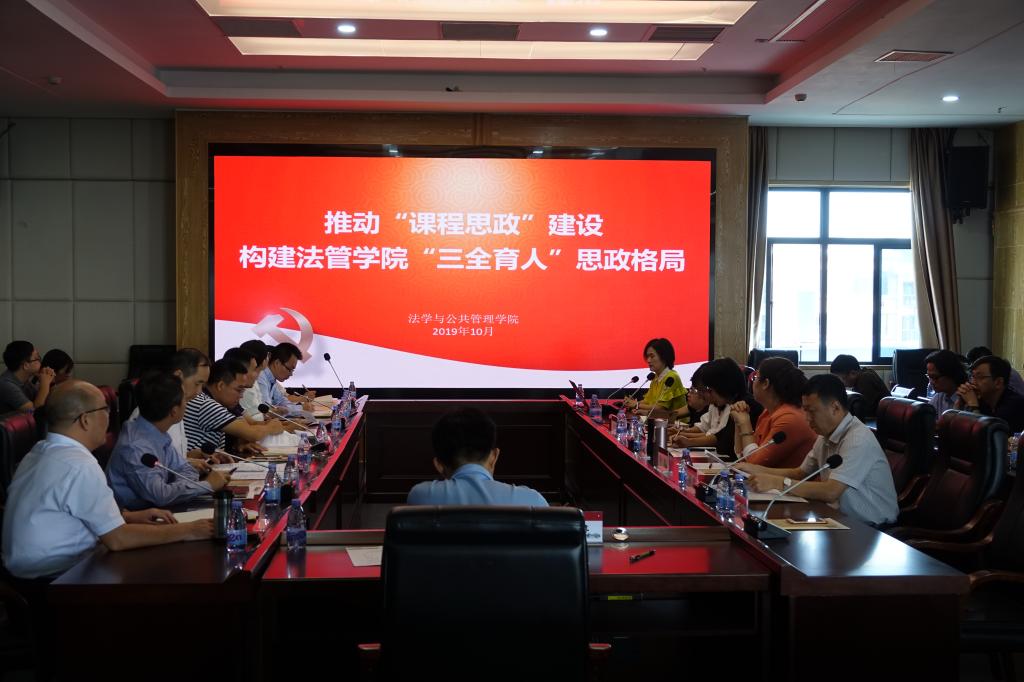 為進(jìn)一步推進(jìn)“不忘初心、牢記使命”主題教育與高校立徳樹人根本任務(wù)相結(jié)合,構(gòu)建“三全育人”工作格局,10月21日,法學(xué)與公共管理學(xué)院在科技樓舉行“課程思政”研討會(huì)。校黨委副書記鐘發(fā)亮出席會(huì)議,學(xué)校相關(guān)部處、法學(xué)與公共管理學(xué)院全體教職工參加會(huì)議。會(huì)議由法學(xué)與公共管理學(xué)院副院長(zhǎng)黃耀明主持。