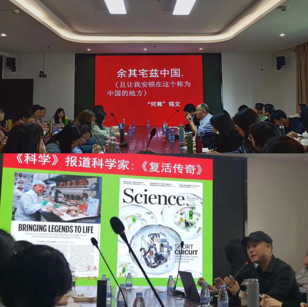 當天,姚大力、李輝教授分別為歷史地理學院師生作了題為《中國:形成與發展的時空節奏》《從基因看中華民族的起源》的專題講座。姚大力教授介紹了“中國”的幾層含義及演化過程,他通過展示各朝代的疆域地圖,講述各朝代“中國”的具體含義,并引申到中國史與漢族史的關系,解釋了“華夏”與“中國”的區別。李輝提出要學會從基因看物種關系的遠近,從化石查找關聯證據,從考古尋找文化遷移路線,并指出開展歷史研究需要融合文化、生物基因、語言、社會心理等不同學科背景和知識。