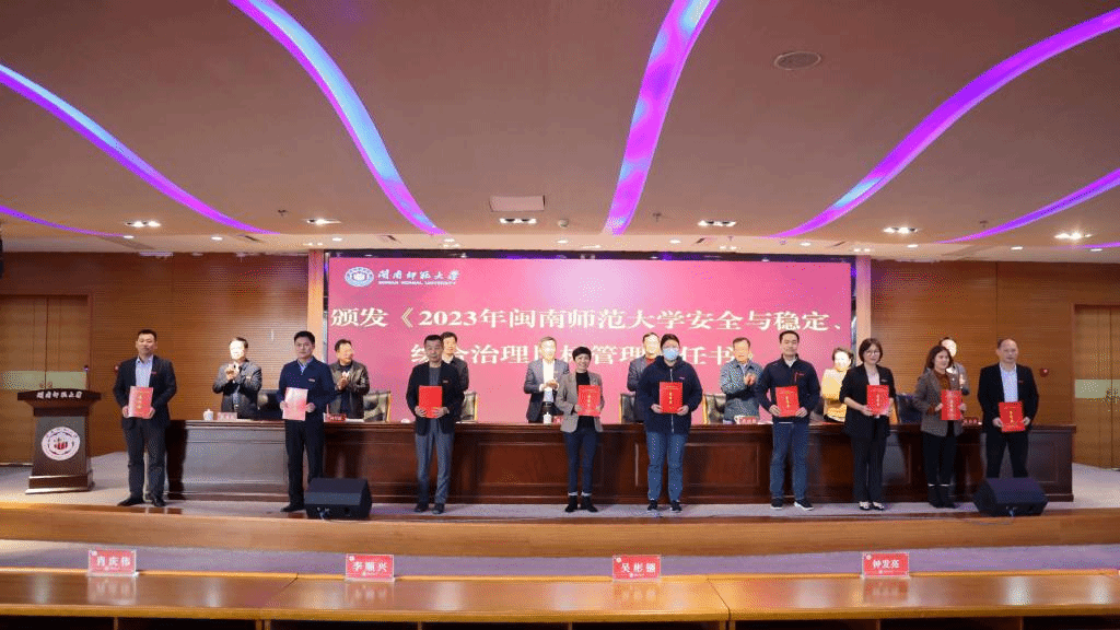 會上,校領導還向二級單位黨政主要負責人頒發《2023年閩南師范大學安全與穩定、綜合治理目標管理責任書》。