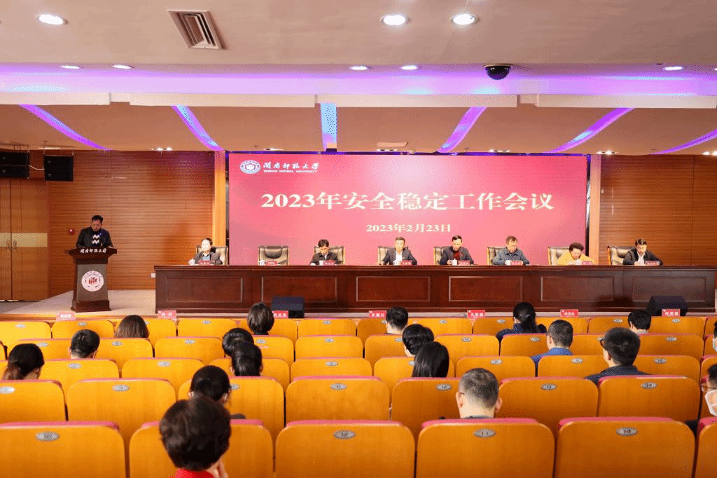 會上,校黨委常委、副校長何紹福回顧了學校2022年安全穩定工作取得的成效,對學校2023年安全穩定工作進行部署。他強調,今年是全面貫徹落實黨的二十大精神的開局之年,也是學校的“提質增效深化年”。各級黨政領導干部要以身作則,以上率下,嚴格落實主體責任,堅決筑牢校園安全穩定防線,毫不松懈做好政治穩定信息排查、消防安全管理、掃黑除惡專項行動、交通安全規范管理等各項工作,精準防范化解安全穩定風險隱患,重視解決師生合理訴求,增強學校穩妥處置突發事件的能力,切實深入開展校園安全生產質量提升行動,推進校園安全穩定工作全面提質增效。