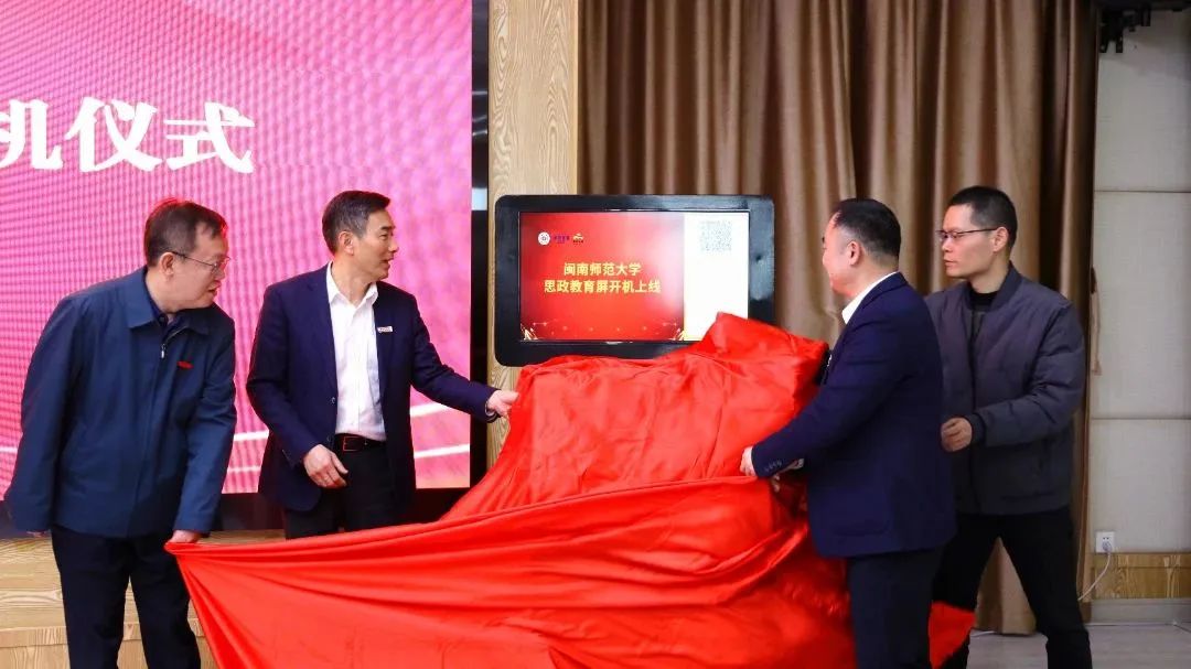 吳彬鏹和徐天白分別致辭。吳彬鏹介紹了近年來閩南師范大學運用數字化手段為思想政治工作賦能的舉措。他表示,數字思政教育屏助學項目契合新時代高校“大思政”格局構建要求,契合以數字化賦能思政工作的發展趨勢,拓展了學校思政宣傳教育新陣地,有利于學校進一步構建完善線上線下、大屏小屏一體的思政平臺矩陣。希望校企雙方進一步深化產教融合協同育人機制,共同搭建校企合作新平臺,攜手為教育事業高質量發展貢獻力量。