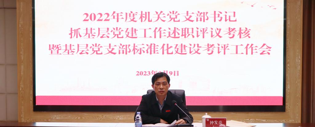 3月9日下午,2022年度機關黨支部書記抓基層黨建工作述職評議考核暨基層黨支部標準化建設考評工作會在科信樓1607會議室召開。校黨委副書記、機關黨委書記鐘發亮出席。機關“兩委”委員、機關各支部書記及支部代表參加會議。