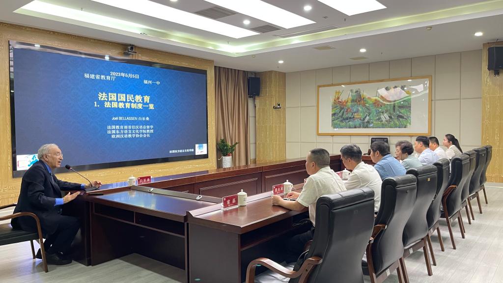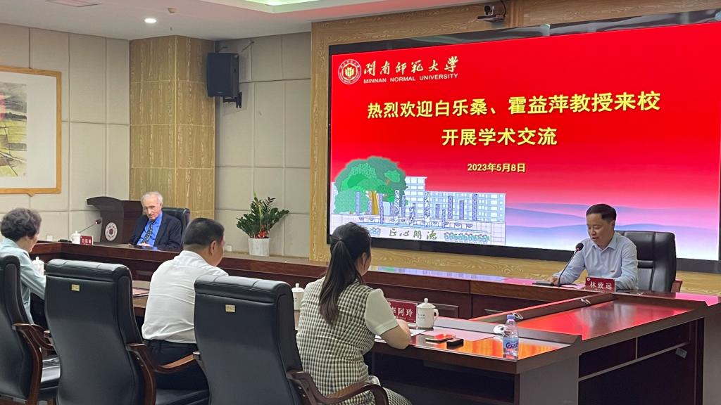 為加快建設(shè)福建高質(zhì)量教育體系,積極發(fā)揮福建教育督導(dǎo)智庫功能,5月8日,閩南師范大學(xué)教育督導(dǎo)研究院舉辦中法教育督導(dǎo)互學(xué)互鑒學(xué)術(shù)交流活動。法國榮譽國民教育漢語總督學(xué)、法國國家東方語言文化學(xué)院博士生導(dǎo)師白樂桑應(yīng)邀來我校開展學(xué)術(shù)交流、調(diào)研考察。華東師范大學(xué)二級教授、博導(dǎo)霍益萍,國家督學(xué)、福建省教育廳原副廳長、一級巡視員、我校教育督導(dǎo)研究院學(xué)術(shù)委員會主任李迅,國家特約教育督導(dǎo)員、福建省教育廳專職副總督學(xué)黃建順參加了交流活動。國家特約教育督導(dǎo)員、校黨委書記、教育督導(dǎo)研究院院長吳彬鏹,校黨委副書記、校長李順興與白樂桑教授一行進(jìn)行了親切交流。