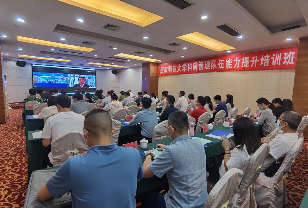 培訓期間,廈門大學教育研究院陳武元教授,廈門大學黨委宣傳部部長、教師工作部部長、社科處處長高和榮教授分別作題為《科研團隊建設與學科交叉》《開展有組織科研的廈大經驗》的專題講座,福建師范大學吳怡教授線上為學員們作題為《做好有組織科研推動高質量科研成果產出》的專題講座。三位專家結合科研工作實際與學員分享了有組織的科研、科研團隊建設、科研成果產出等寶貴經驗。他們為學員們理思路、明路徑、找對策,鼓勵學員們堅定信心,直面問題,創新發展,不斷提升科研工作管理水平。此外,我校科研處處長林福財,財務處處長陳茜,宣傳部、統戰部副部長朱艷麗分別作《科研政策和制度解讀暨科研誠信教育》《科研經費報銷注意事項》《科研項目意識形態管理》等專題輔導。
