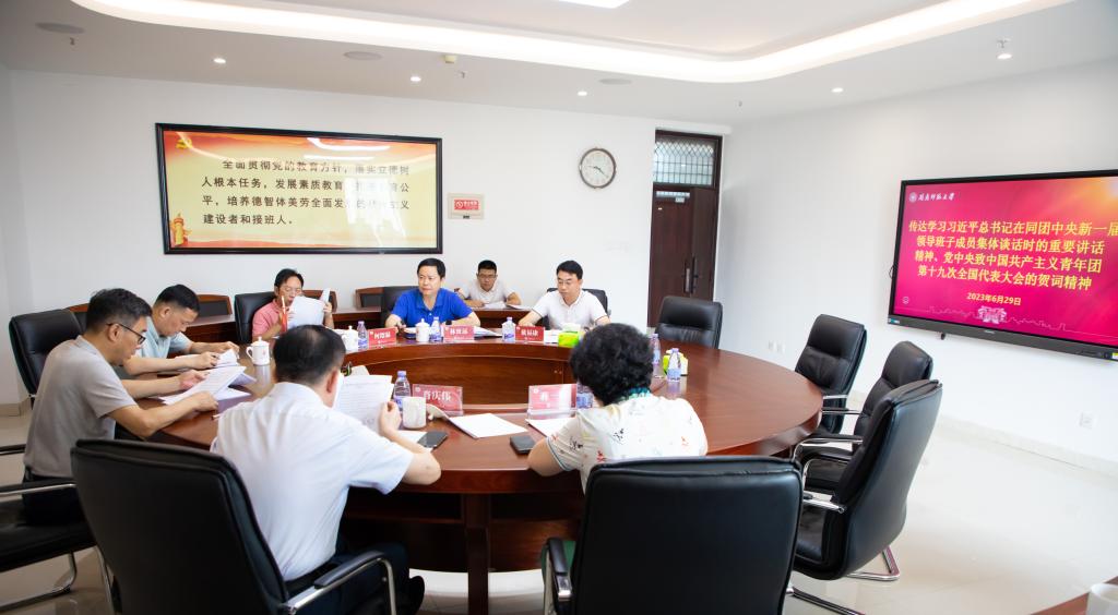 會議強調,要加強組織動員,結合深入開展主題教育,迅速興起學習宣傳貫徹重要講話和賀詞精神的熱潮,全面系統學習習近平總書記關于青年工作的重要思想,切實把重要講話和賀詞精神落實到學校青年和共青團工作的全過程全方面。要強化政治引領,堅持和加強黨對學校共青團工作的領導,認真落實黨建帶團建制度機制,及時研究解決共青團事業發展中的實際問題。學校黨員領導干部要深入青年師生開展調查研究,做青年師生的知心人、引路人,教育引導廣大青年師生在強國建設、民族復興的歷史潮流中確立正確的人生目標。要堅持改革創新,學校各級團組織要堅持服務大局,堅持扎根青年,堅持自我革命,不斷增強引領力、組織力、服務力,團結引領學校廣大青年師生把思想和行動統一到黨的二十大精神上來。