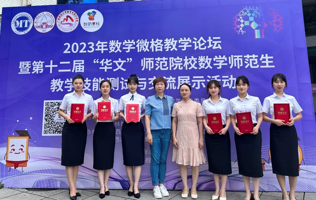 近日,第十二屆“華文”師范院校數(shù)學(xué)師范生教學(xué)技能測試與交流展示活動在廣西師范大學(xué)舉辦,經(jīng)過激烈的比拼,我校學(xué)子斬獲佳績,在微課設(shè)計能力測試本專科組、研究生組,微格教學(xué)技能測試本專科組、研究生組比賽中,我校數(shù)學(xué)與統(tǒng)計學(xué)院學(xué)生共有3隊獲一等獎,6隊獲二等獎,1隊獲三等獎。