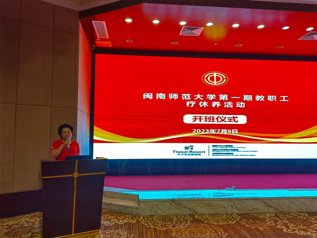 7月9日-13日,閩南師范大學(xué)第一期教職工療休養(yǎng)活動(dòng)在永定天子溫泉療休養(yǎng)基地舉行。來(lái)自學(xué)校不同崗位的一線教職工114人參加本次活動(dòng)。校黨委常委、副校長(zhǎng)、校工會(huì)主席蔣一婷出席開班式并致辭。