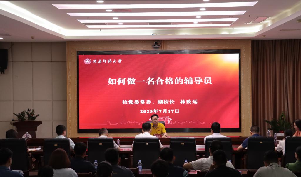 林致遠圍繞《如何做一名合格的輔導員》講授黨課,希望全體輔導員進一步增強職業認同感和使命感,堅持以學生為中心的工作思路,善于從全局研究部署工作,善于運用法治思維解決問題和推動工作,不斷提升政治能力、謀劃能力、執行能力、溝通能力和防控風險能力,在成長發展中磨煉心力、下好功夫、增長本領,不斷凝聚思想政治工作高質量發展的思想共識和行動合力。