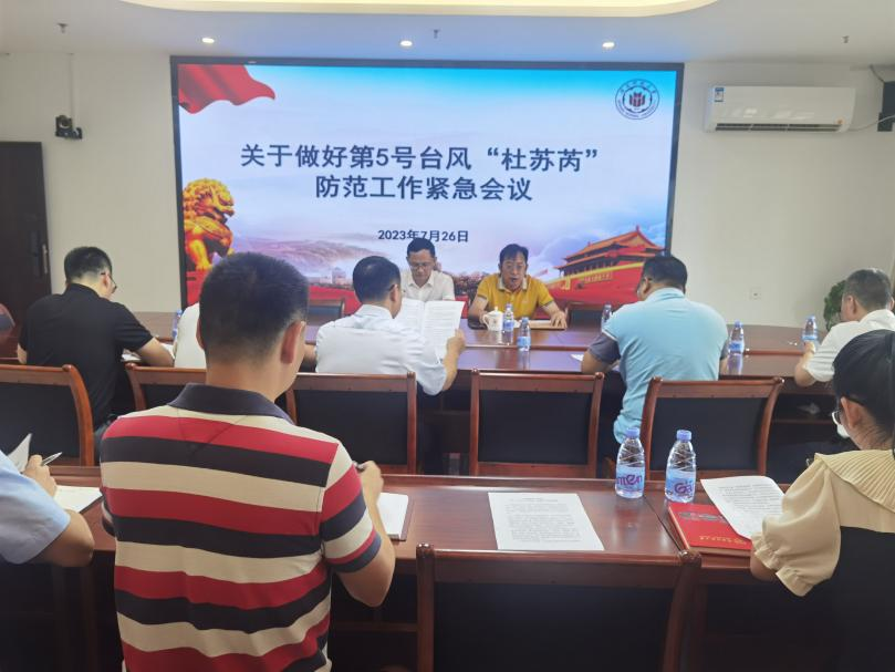 7月26日上午,我校召開防范第5號臺風“杜蘇芮”工作緊急部署會,傳達學習《福建省人民政府防汛抗旱指揮部關于做好第5號臺風“杜蘇芮”防御工作的通知》《漳州市人民政府防汛抗早指揮部關于提升防臺風應急響應至Ⅱ級的通知》等相關文件精神,并進行工作部署。校黨委副書記、校長李順興出席并講話,校黨委常委、副校長何紹福主持會議。