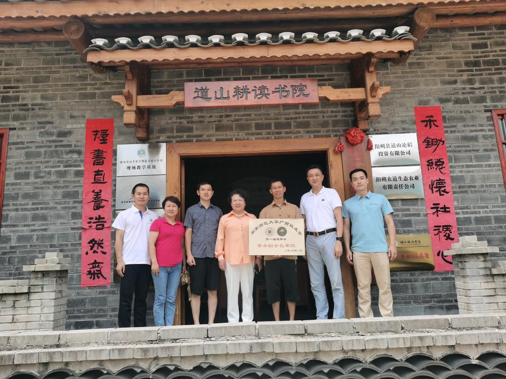8月13日至8月14日,蔣一婷一行走訪了桂林市臨桂區劉三姐茶園、陽朔縣道山論稻投資有限公司、道山耕讀書院等廣西部分校友企業,與校友代表進行親切交流。座談會上,2005級思政專業校友張揚欽、2009級課程與教學論專業校友彭騫分別介紹了企業文化、發展歷程、經營理念、八桂文化及耕讀文化等,蔣一婷對校友個人發展成績、奮發有為精神和對母校感恩之情給予高度贊賞,希望廣西校友會能夠整合校友資源,凝聚校友力量,深化校友之間、校友與母校之間的融合發展,攜手推動母校校友工作向共建、共享、共融、共贏方向發展,一起走向更加美好的未來。