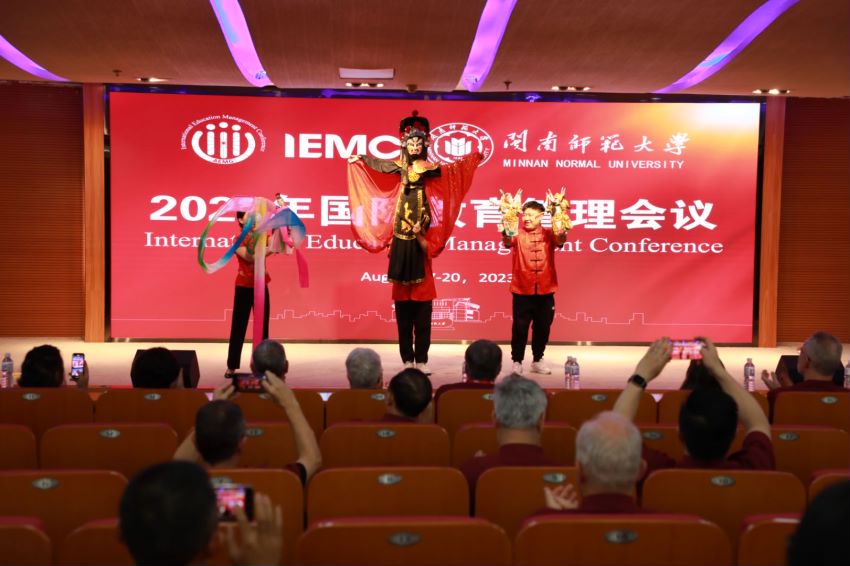 當天下午,2023國際教育管理會議全體參會代表參觀了我校閩南文化特色展、系列《復興之路》特色書展等,并欣賞茶道演示、觀看漳州布袋木偶等閩南文化民間藝術表演。
