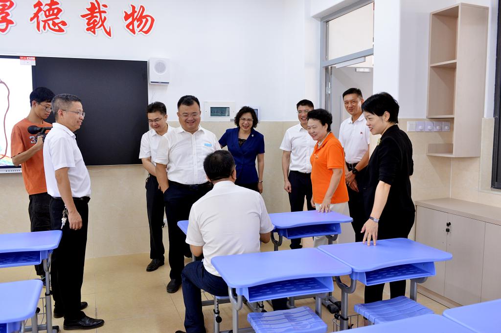 蔣一婷和朱真共同為閩南師范大學(xué)附屬龍溪學(xué)校揭牌。隨后參觀了新學(xué)校,實地查看了校園景觀、學(xué)生教室等場地和設(shè)施設(shè)備,并對新校區(qū)的投入使用和學(xué)校品牌建設(shè)提出要求和意見。