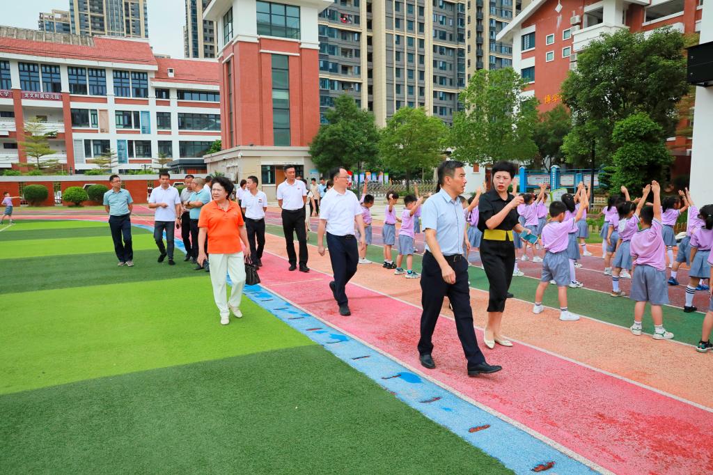 調(diào)研組實(shí)地查看閩南師范大學(xué)龍文附屬小學(xué)校園環(huán)境