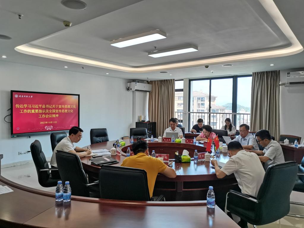 會議強調,要提高政治站位,把學習習近平總書記的重要指示精神與學習習近平新時代中國特色社會主義思想結合起來,與學習習近平總書記關于教育強國的重要論述結合起來,堅決扛起學習貫徹習近平文化思想的重要政治責任,深化對高校宣傳思想文化工作的規律性認識,把宣傳思想文化工作融入到人才培養、學科建設、社會服務、文化傳承、國際化辦學等各領域,推動習近平文化思想在學校走深走實、落地生根。要加強理論學習,深刻認識學習貫徹習近平文化思想的重大意義,深刻領悟其中的豐富內涵、宏大視野以及蘊含的偉大真理力量和實踐力量,準確把握習近平總書記對宣傳思想文化工作提出的“七個著力”的要求,持續加強對習近平文化思想的學習、研究、闡釋,增強做好新時代新征程宣傳思想文化工作的責任感使命感。要落實立德樹人,加強和改進學校思想政治教育工作,以習近平文化思想為指導,切實把牢意識形態主動權,傳播正能量、唱響主旋律;著力培育社會主義核心價值觀,大力弘揚英模精神,引導廣大師生傳承紅色基因、堅定理想信念;要堅持文化育人,大力實施“優雅計劃”和美育浸潤行動,推動中華優秀傳統文化的創造性轉化和創新性發展,深入推進以閩南文化為核心的特色校園文化建設,營造良好的文化育人氛圍,增強全校師生文化自信。