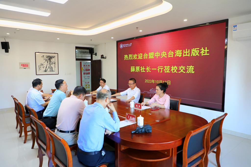 10月13日,臺盟中央臺海出版社社長薛原一行來我校交流座談,校黨委副書記、校長李順興,校黨委常委、副校長張龍海出席,學校有關部門負責人、教師代表參加座談會。