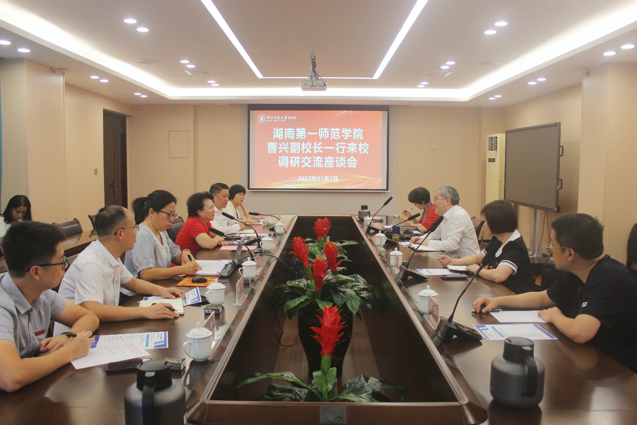 11月7日,湖南第一師范學院副校長曹興一行來我校調研交流。校黨委常委、副校長蔣一婷出席座談會。
