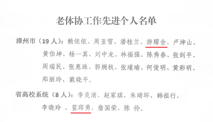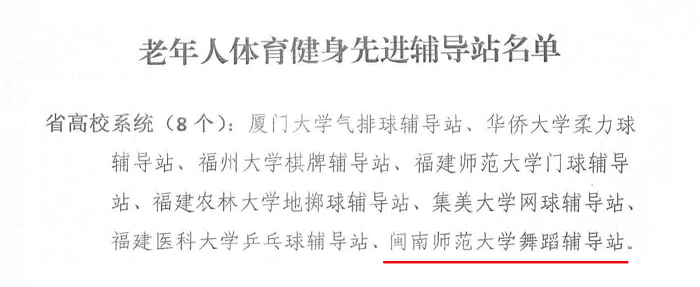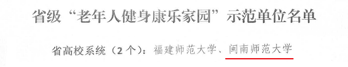 近日,福建省老年人體育協會公布老體協工作先進單位(個人)、先進輔導站(優秀輔導員、優秀教練員)和省級“老年人健身康樂家園”示范單位評選結果。我校“老年人健身康樂家園”獲評省級示范單位,舞蹈輔導站獲評老年人體育健身先進輔導站,游耀金、藍邱勇獲評老體協工作先進個人。