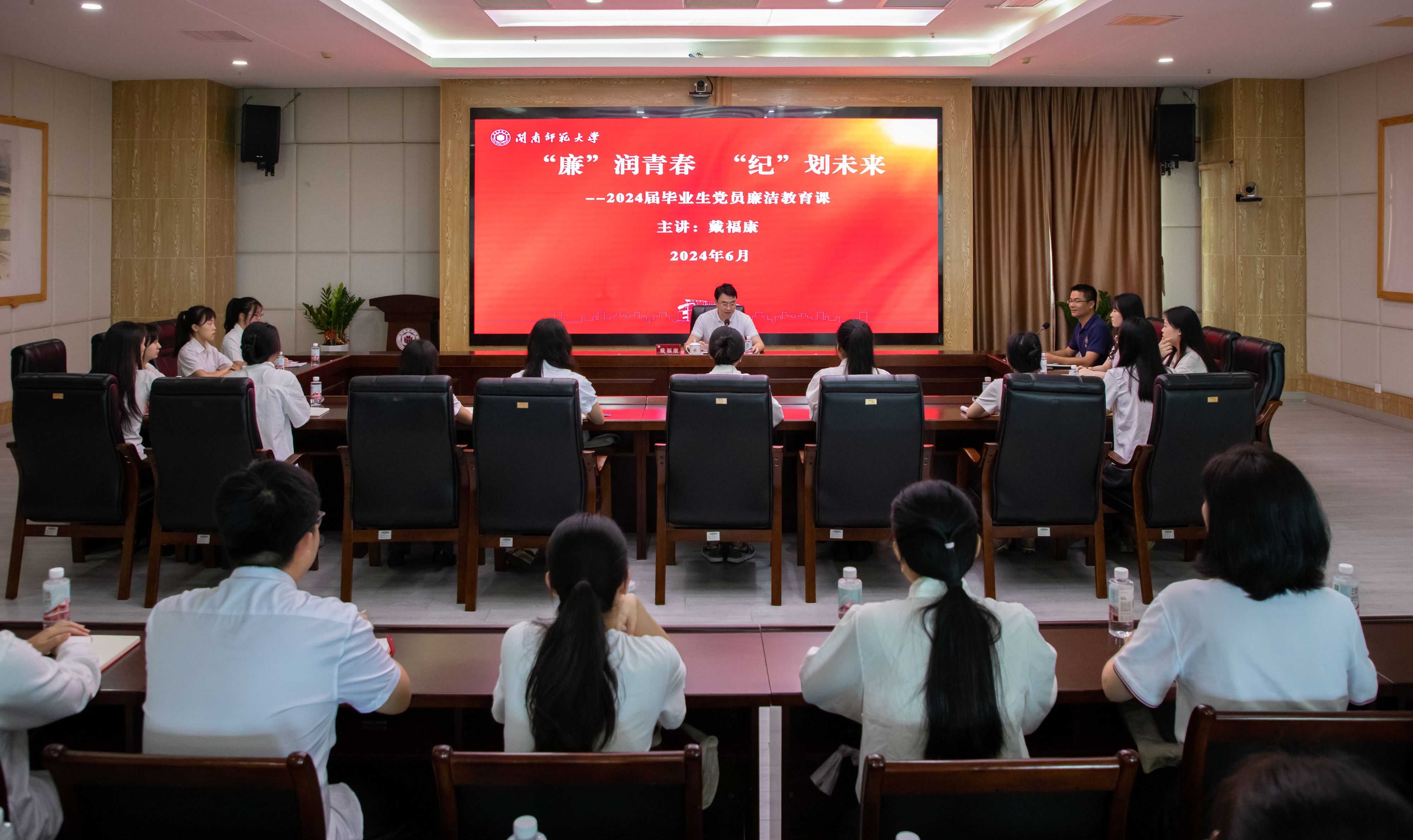 為扎實推動黨紀學習教育走深走實、見行見效,加強畢業生黨員黨紀教育,6月18日下午,校黨委常委、紀委書記戴福康在科技信息樓1607會議室為2024屆畢業生黨員代表講授廉潔教育課。