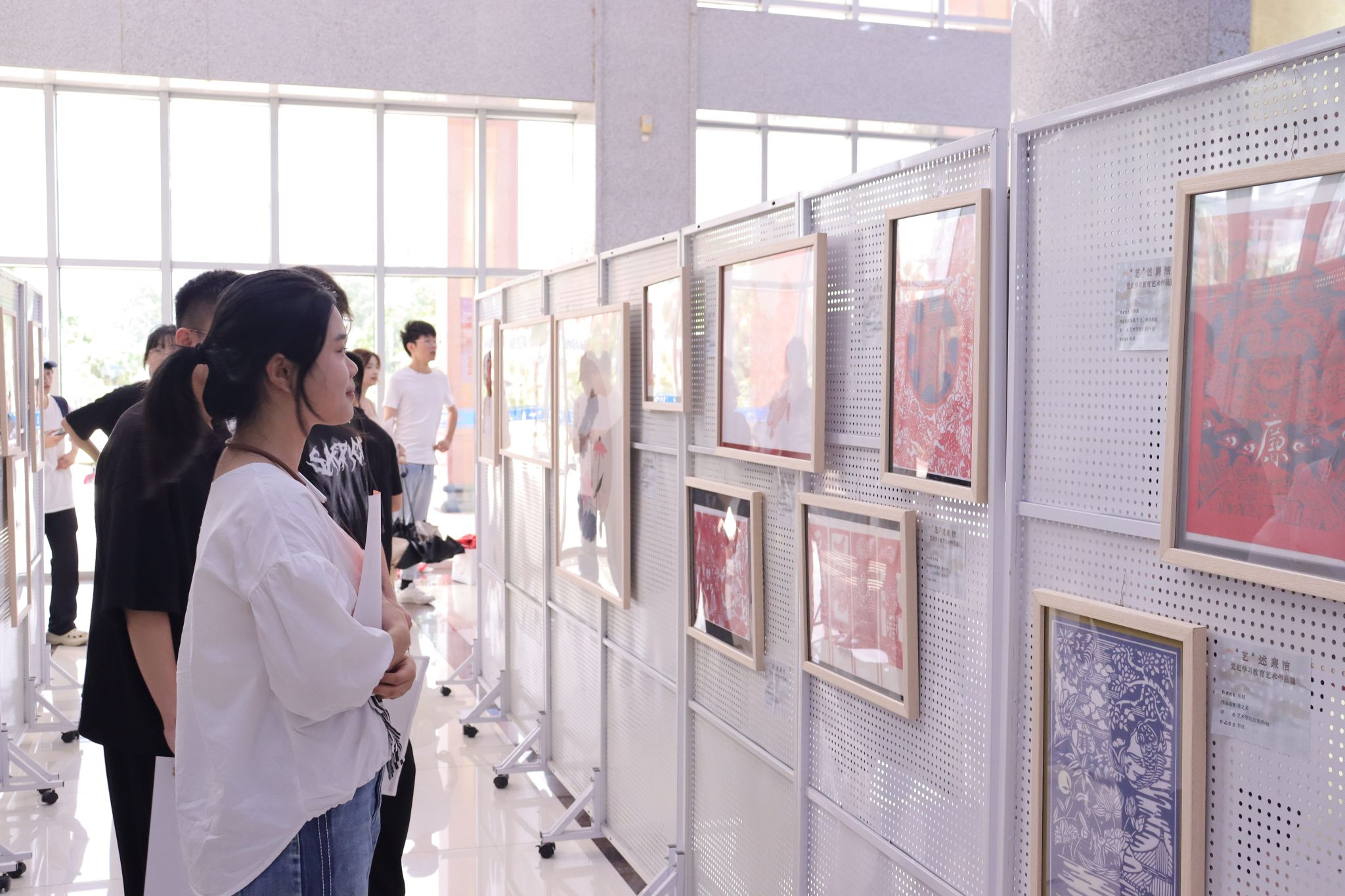 據悉,本次活動自5月啟動以來,全校師生黨員踴躍投稿,共征集到來自8個學院200多幅藝術作品,形式涵蓋剪紙、書法、國畫、油畫等多種藝術表現形式。本次展覽從中遴選展出60余幅入圍作品。本次活動通過廣大師生喜聞樂見的藝術作品來展現“廉潔”文化,既是深化黨紀學習教育的創新形式,也是“行走的思政課”的拓展嘗試,進一步教育引導廣大師生黨員自覺學紀、知紀、明紀、守紀,以美育推動新時代校園廉潔文化建設。