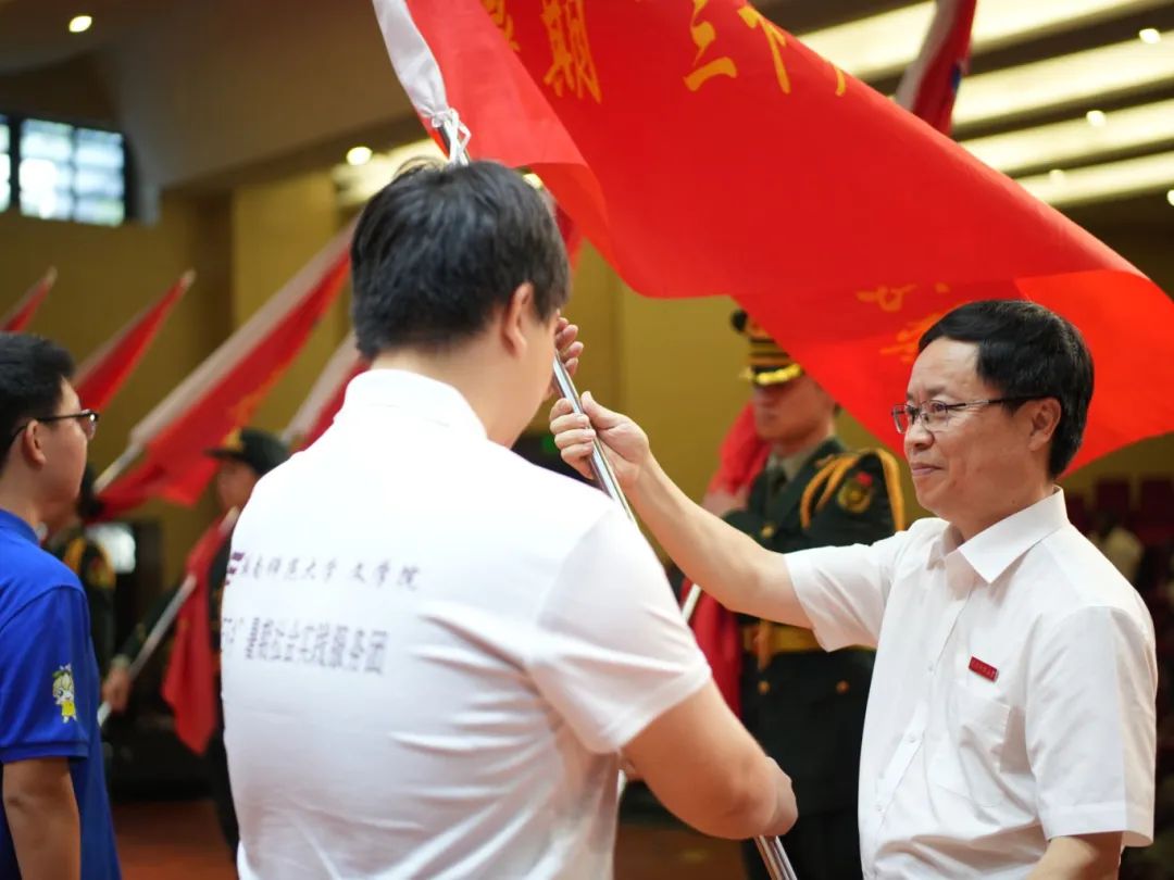 校黨委副書記林致遠為社會實踐團隊代表授旗