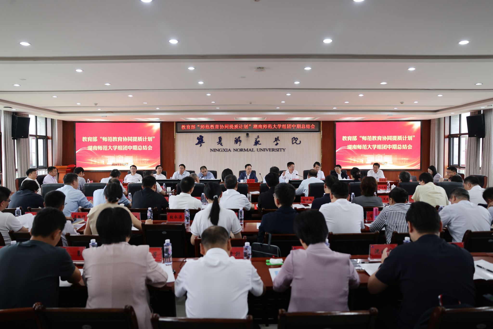 7月7日,教育部“師范教育協(xié)同提質(zhì)計(jì)劃”第八組團(tuán)中期總結(jié)會(huì)暨教師教育論壇在寧夏師范大學(xué)召開。校黨委常委、副校長(zhǎng)張龍海帶隊(duì)參會(huì)。