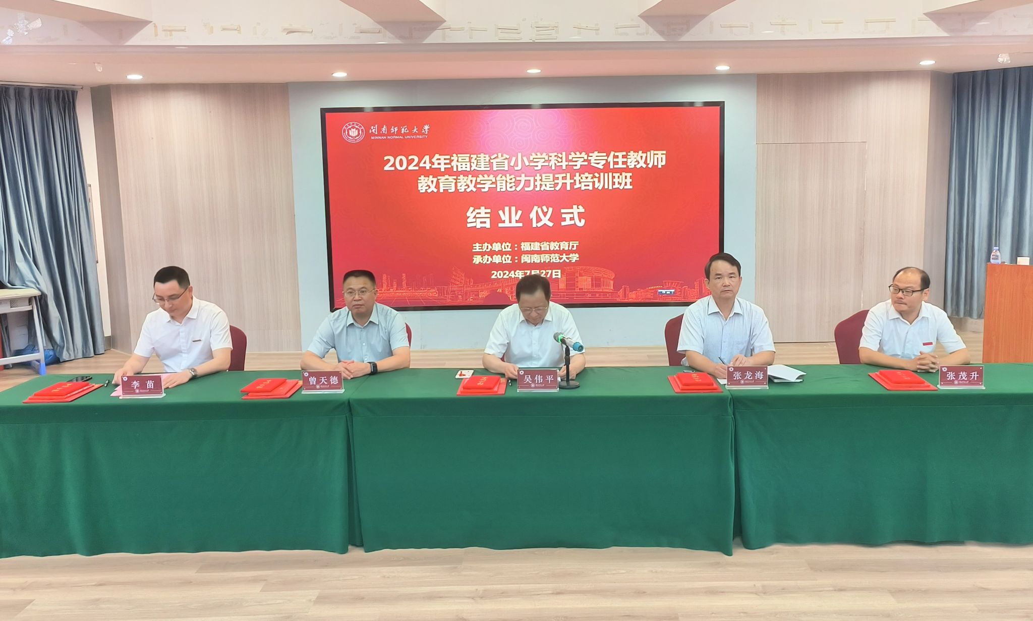 7月23日至28日,2024年福建省小學科學專任教師教育教學能力提升培訓班(第一期)在我校舉辦。福建省委教育工委委員,省教育廳黨組成員、副廳長吳偉平,校黨委常委、副校長張龍海出席結業儀式。