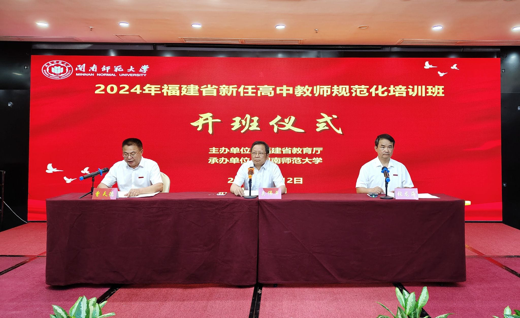 8月12日,由我校承辦的2024年福建省高中新任教師規范化培訓班在廈門開班。福建省委教育工委委員,省教育廳黨組成員、副廳長吳偉平,校黨委常委、副校長張龍海出席開班式。開班式由繼續教育學院院長曾天德主持。