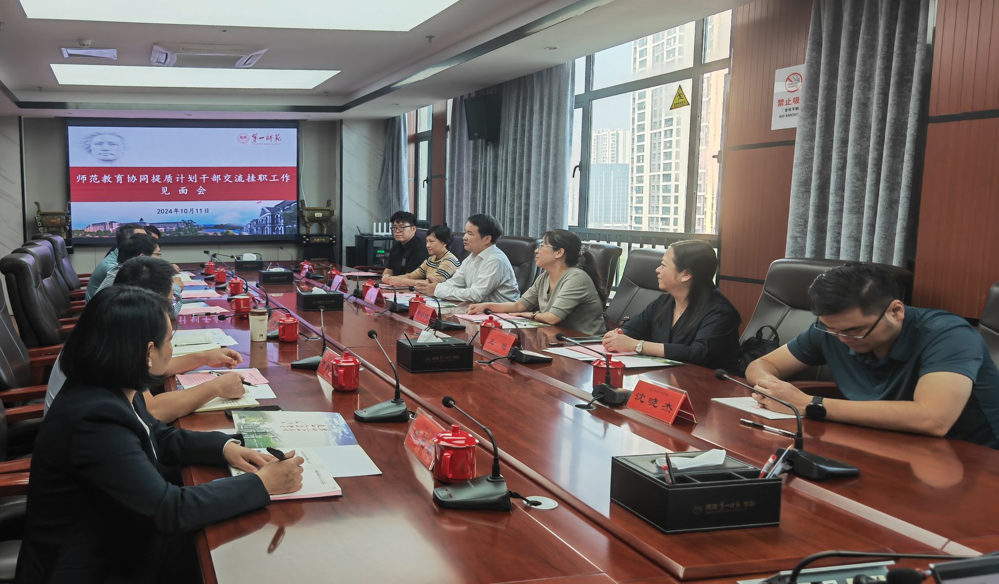 為加強(qiáng)與“師范教育協(xié)同提質(zhì)計(jì)劃”第八組團(tuán)湖南高校的深度互動(dòng)合作,提升我校教育管理人員的綜合素質(zhì),10月10日至12日,校黨委常委、副校長張龍海一行送選派干部赴湖南師范大學(xué)、湖南第一師范學(xué)院和懷化學(xué)院掛職。