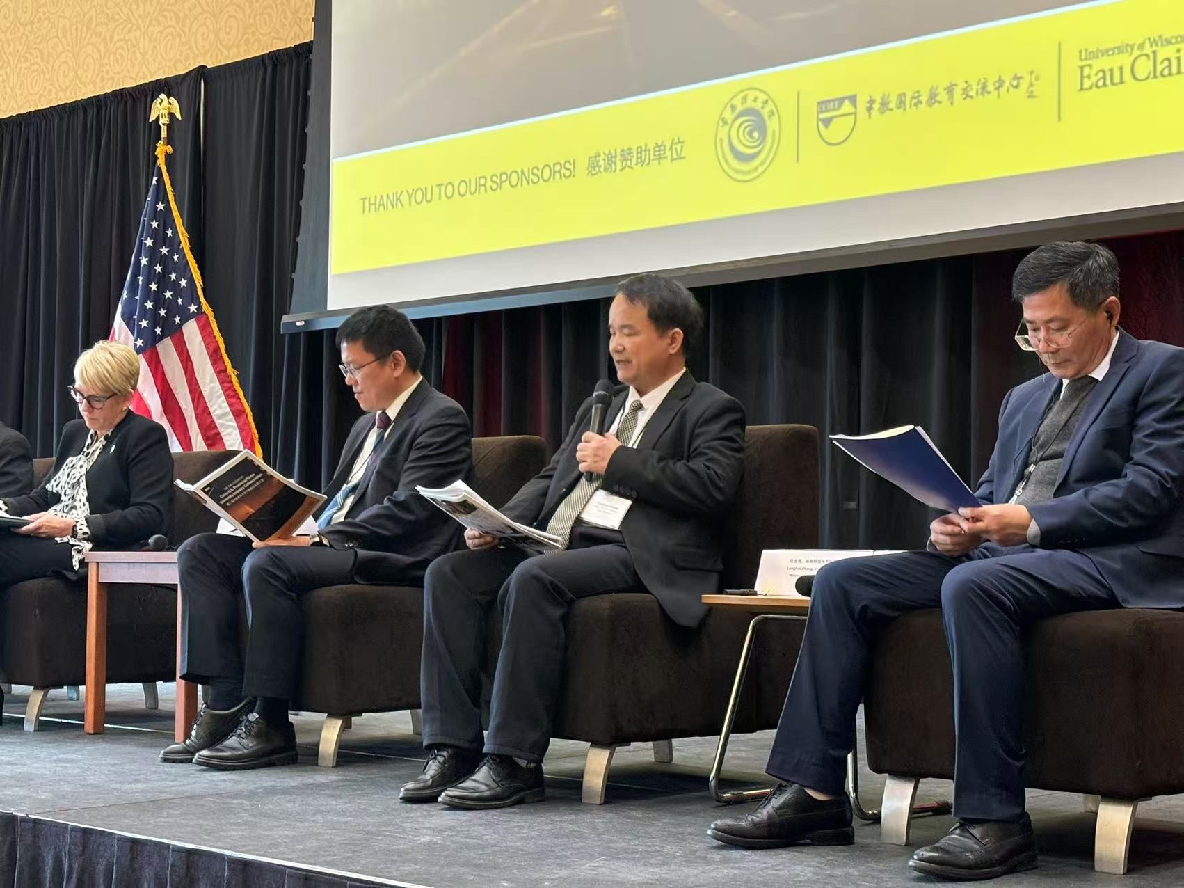 會議期間,張龍海與美國威斯康星大學斯托特分校、美國圣克勞德州立大學、南京工程學院代表共同擔任大會主題研討嘉賓,圍繞校企合作如何促進大學服務地方使命,創新大學發展路徑;大學、產業和區域經濟三者如何協同發展,支持大學為地方經濟的未來發展培養人才;中美省州大學如何與企業攜手合作,共同應對當今世界面臨氣候變化、醫療衛生、跨國犯罪等許多挑戰等問題展開主題研討。