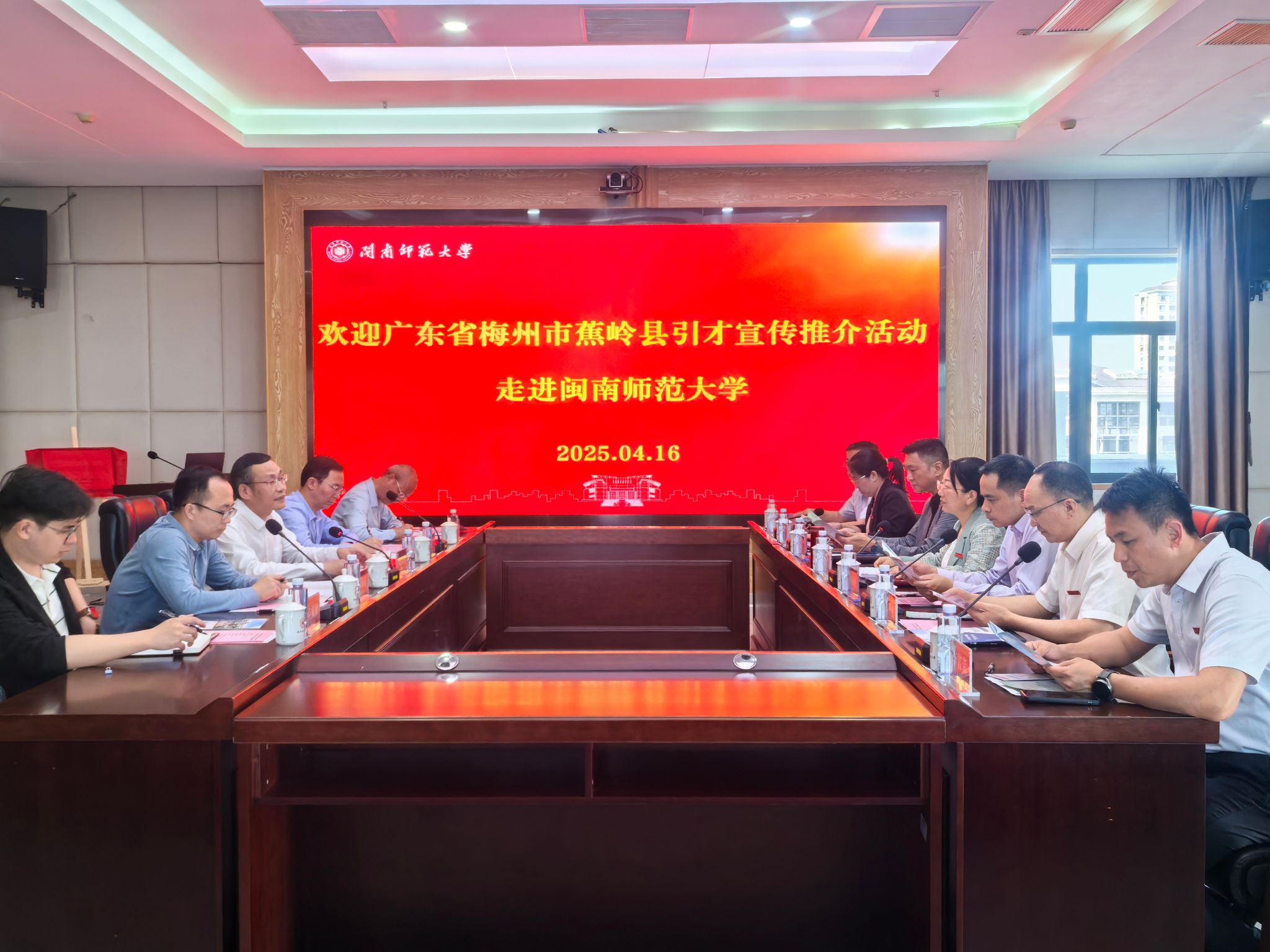 廖志丹介紹了我校發展歷程及近年來在學科建設、人才培養、科學研究、服務社會等方面取得的成績。謝偉傳介紹了蕉嶺縣近年來在推進“百千萬工程”、建設梅州蘇區融灣先行區綜合示范窗口及產業發展、人才需求等方面情況。雙方在聯動構建常態化的人才供需對接機制方面進行了深入交流,就加強開展人才對接活動、共建實習實踐和人才引育基地、推動產學研合作、推動多層次交流等方面簽訂了《人才引育協議》,并舉行“梅州市蕉嶺縣引才聯絡站(閩南師范大學)”揭牌儀式。