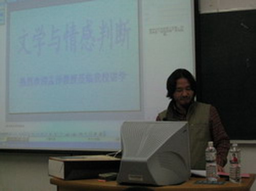 孟教授就林語堂的作品以何種立場向世界傳播中國文學(xué)為切入點(diǎn),淺談了文學(xué)與情感的關(guān)系。他指出,文學(xué)是從審美開始到審美結(jié)束的過程,興于詩、立于禮、成于樂。他認(rèn)為人的情感主要有三種:政治情感、倫理情感和愛情,并分別就電視劇《康熙王朝》、王朔的《致女兒書》、朋友女兒的《十七跋》,針對以上觀點(diǎn)做了詳細(xì)且生動的闡釋。