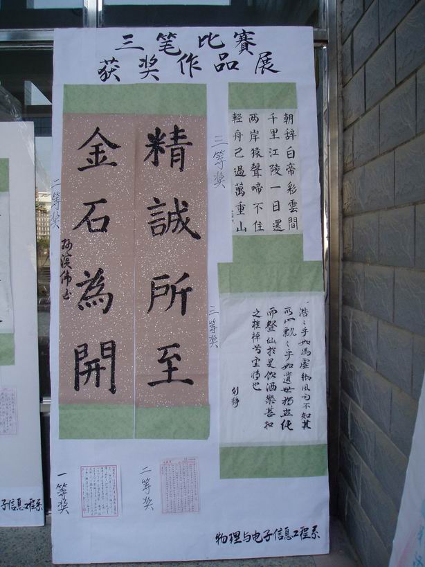 物理與電子信息工程系團委主辦、物電系宣傳中心承辦的毛筆、鋼筆、粉筆——“三筆”大賽于12月10日圓滿落幕。