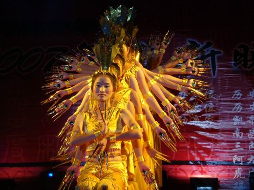 晚會(huì)由一段動(dòng)感的“芭啦芭啦”舞拉開序幕。而后,化學(xué)系藝術(shù)團(tuán)帶來的《千手觀音》讓觀眾重溫了06春晚震撼人心的感人畫面,在瞬間點(diǎn)燃了全場(chǎng)的激情,將晚會(huì)推上一個(gè)小高潮。極具節(jié)奏感的琵琶二重奏,電子琴、長(zhǎng)笛聯(lián)奏,南音、二胡等器樂,讓大家盡品絲竹之樂,彰顯東方文化的博大精深與別樣風(fēng)韻。活力四射的健美操、瑜珈表演展示了歷史系學(xué)子們的激情與活力。Q版話劇《完璧歸趙》,詼諧的風(fēng)格,夸張而又戲劇化的表演形式,爆笑的段子和最時(shí)尚的元素的融入讓在場(chǎng)的觀眾笑得前仰后合,博取了晚會(huì)最熱烈的掌聲。晚會(huì)特邀嘉賓虎威臺(tái)拳館的演員們帶來的精彩武術(shù)表演,也為整臺(tái)晚會(huì)增色不少。手語表演《陽光總在風(fēng)雨后》則將激情帶到晚會(huì)的尾聲。最后,晚會(huì)在大合唱《就在今天》中圓滿落幕。