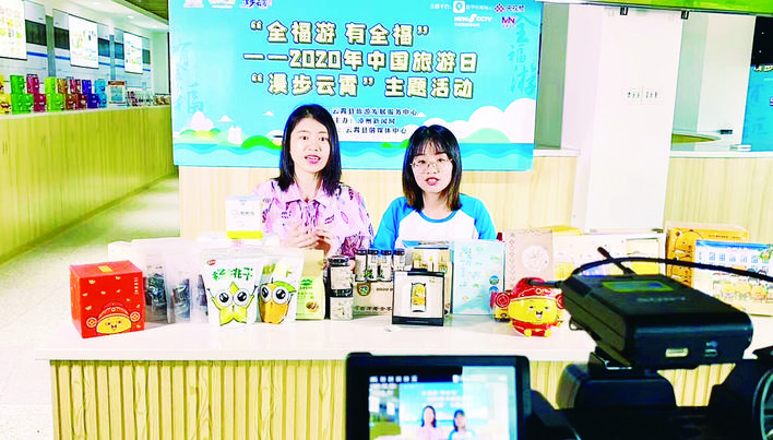 漳州新聞網主播(左)在“2020年中國旅游日‘漫步云霄’主題活動”中直播帶貨