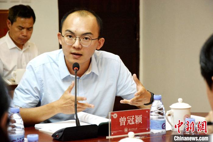 曾冠穎在研討會上結(jié)合親身“登陸”經(jīng)歷,探討閩臺文化融合發(fā)展。 龔雯 攝
