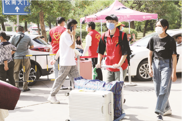 在動車站,志愿者早早到位,舉著醒目的牌子迎接新生到來;在校園里,志愿者、電瓶車司機(jī)主動幫助新生搬運(yùn)行李,熱情向新生介紹漳州和學(xué)校的情況;在報到點(diǎn),工作人員、志愿者耐心講解報到注意事項(xiàng),為新生提供各項(xiàng)咨詢,“綠色通道”讓家庭經(jīng)濟(jì)困難的學(xué)生順利入學(xué);公寓入口處,體溫測量儀、消毒液、口罩等防疫用品不能少。