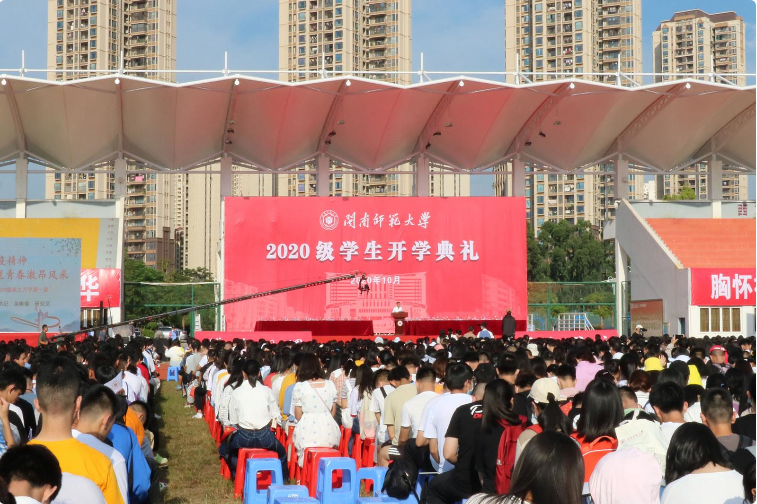 福建日報App-新福建10月14日訊(記者 杜正藍 通訊員 陳小環 沈瑞芳/文 康哲力/圖)10月14日上午,閩南師范大學2020級新生開學典禮在學校西區田徑場舉行。校黨委書記吳彬鏹以《弘揚偉大抗疫精神展現青春激昂風采》為題為5600多名新生講授了入學第一堂思政課。活動由閩南師大黨委副書記鐘發亮主持。