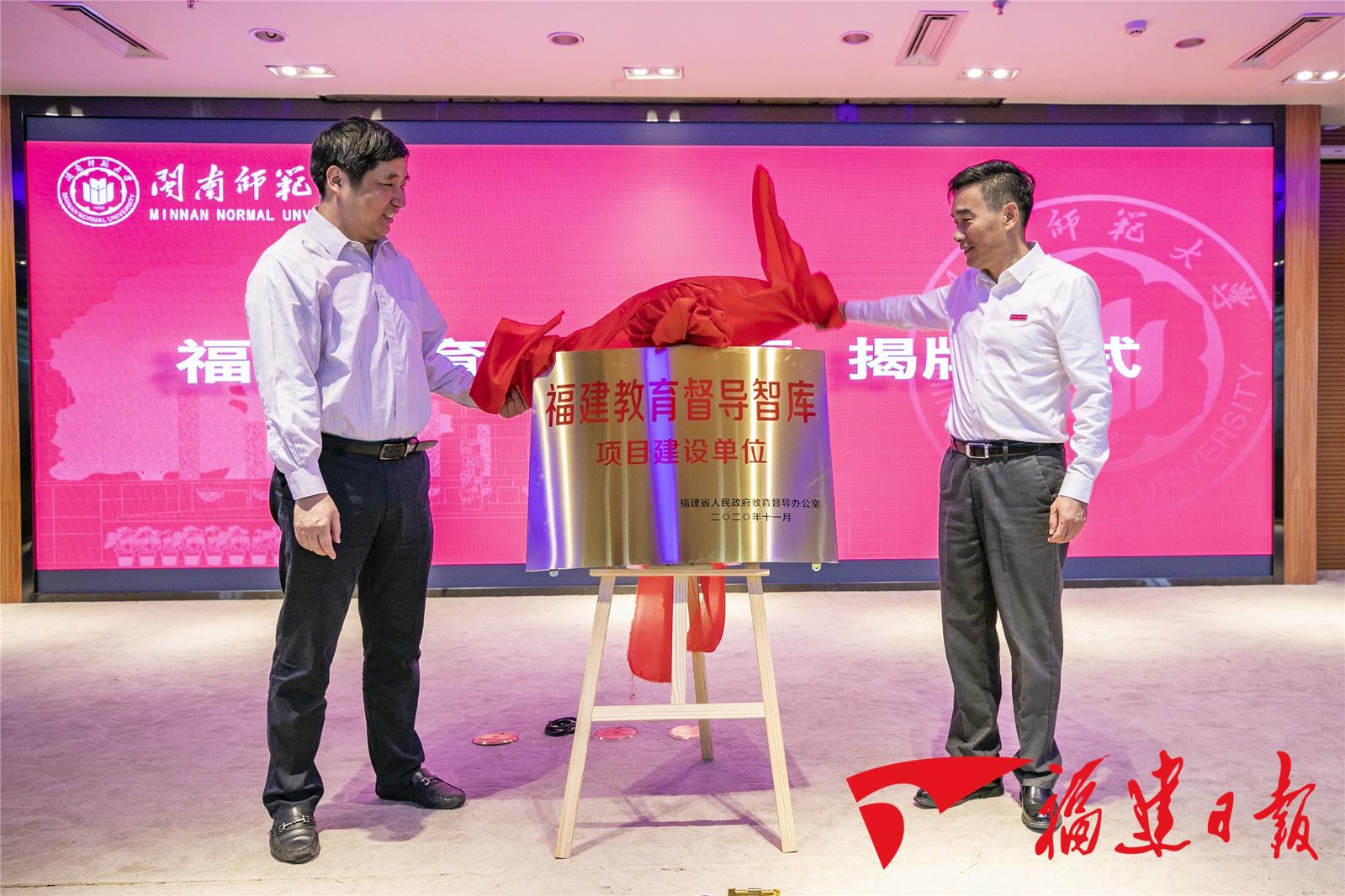 隨后舉行“福建教育督導智庫項目建設單位”揭牌儀式,李迅和吳彬鏹共同為閩南師范大學“福建教育督導智庫項目建設單位”揭牌。
