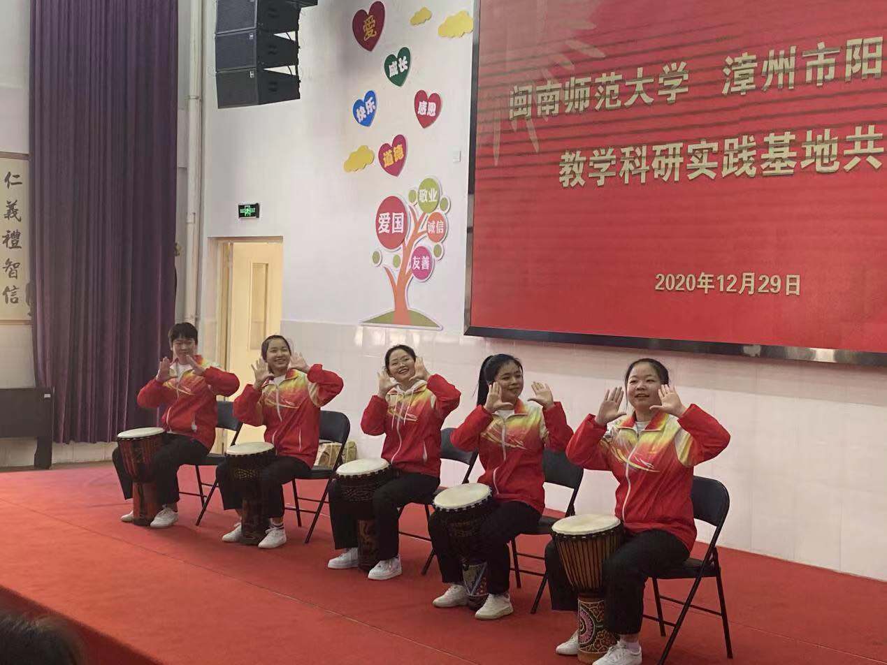 授牌儀式結束后閩南師范大學各領導及漳州市陽光學校全體師生觀看陽光學校宣傳短片以及由漳州市陽光學校藝術團帶來的非洲鼓表演《少年》。