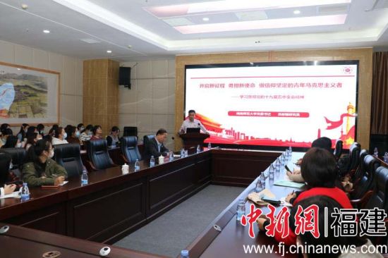中新網(wǎng)福建新聞12月31日電(梁楹 康哲力) 近日,閩南師范大學(xué)黨委書記吳彬鏹為馬克思主義學(xué)院2020級本科生、研究生講授題為《開啟新征程 勇?lián)率姑?做信仰堅定的青年馬克思主義者——學(xué)習(xí)貫徹黨的十九屆五中全會精神》的形勢政策課。