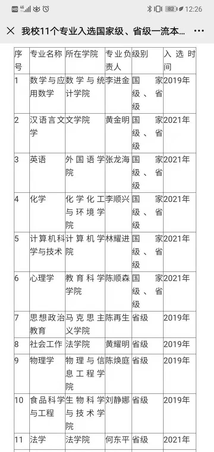 閩南師范大學國家級、省級一流本科專業建設點名單