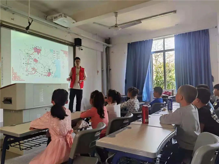 系列活動包含“小小演說家”“菁苗小課堂”等子活動。“小小演說家”活動由學院大學生志愿者為薌城區部分小學的學生進行演講、朗誦培訓,旨在培養小學生的語言表達能力。活動期間,志愿者們精心挑選紅色經典詩詞,帶領小朋友們一起誦讀。例如朗誦《七律·長征》,志愿者們在朗誦前先向小朋友們介紹長征的歷史,然后逐詞逐句教小朋友們朗誦,在朗誦中感悟革命先輩跋山涉水、不畏艱險的偉大長征精神。小朋友們在志愿者的幫助下,也鼓起勇氣、克服困難,逐步蛻變成長為“小小紅色經典演說家”。