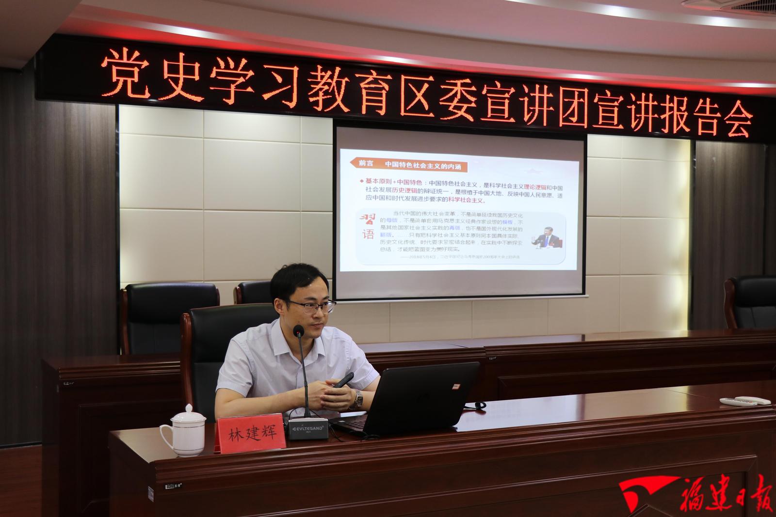 福建日?qǐng)?bào)·新福建客戶端4月30日訊 (記者 李妙珠)4月29日下午,黨史學(xué)習(xí)教育區(qū)委宣講團(tuán)到碧湖街道開(kāi)展宣講報(bào)告會(huì)。區(qū)委宣講團(tuán)成員、閩南師范大學(xué)馬克思主義學(xué)院教授林建輝作題為《中國(guó)共產(chǎn)黨與中國(guó)特色社會(huì)主義》的宣講報(bào)告。街道全體黨員干部,社區(qū)主干、分管宣傳工作人員等到場(chǎng)聆聽(tīng)。