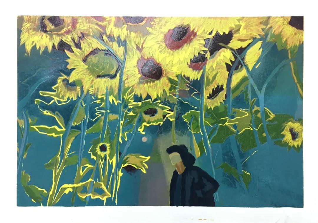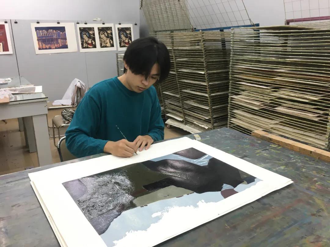 版畫創作需要通過畫稿、制版、印刷才能完成畫面,在這個過程中,制版的復雜性、技術性、多樣性以及整合畫面的能力都需要學生具備較強的動手能力。一張作品從構思到制版再到印刷完成,都需要創作者親手獨立完成??梢哉f,作品是否能順利完成,需要腦力與手的協調工作,很大程度上取決于創作者能否具有很強的動手能力,并在此基礎上獲得身心一致的藝術體驗。同時在版畫的制作過程中,必須要做到極其嚴謹、有條不紊的按照預先設定的工作進程安排好每個步驟,循序漸進地完成作品,這也將對學生的耐心、細心、意志力等起到很好的訓練作用。版畫制作的周期性強、勞動強度大,需要在制作過程中始終保持注意力的高度集中,耐心的處理好每一個細小環節,稍有馬虎就會前功盡棄。而此次參加研學培訓的閩南師大油畫系大三的同學們,憑借著他們堅實的素描功底、色彩素養和超強的動手能力,很好地完成了各自的版畫處女作。