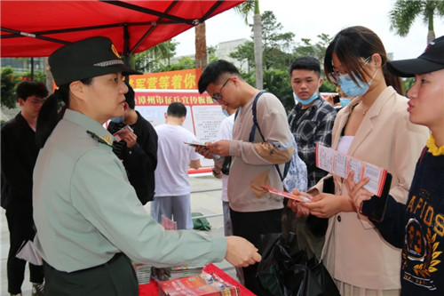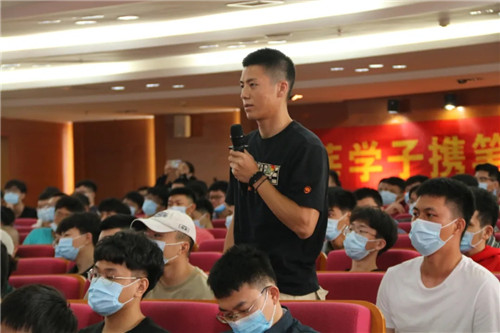 現(xiàn)場還進行征兵政策互動提問,漳州軍分區(qū)動員處處長陳宙峰、漳州軍分區(qū)政治工作處主任韓少華、漳州市公安局治安管理支隊四級高級警長王朝湖共同為同學(xué)答疑解惑,現(xiàn)場同學(xué)們就入伍條件、報名流程、漳州本地入伍優(yōu)惠政策等踴躍提問。